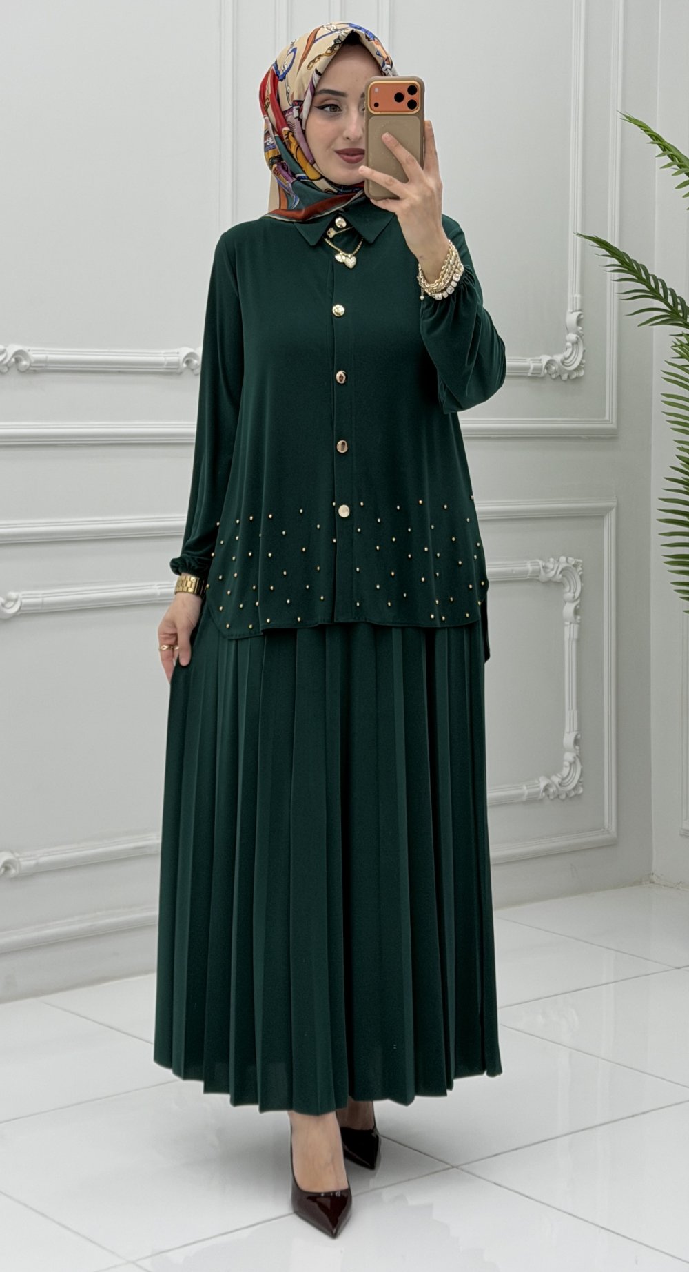 Hesna Etek Takım,hem iş hem de günlük hayatınızda rahatlıkla tercih edebileceğiniz çok yönlü bir parçadır. Şıklığı konforla buluşturan bu tasarım, sezonun en gözde modellerinden biri olacak