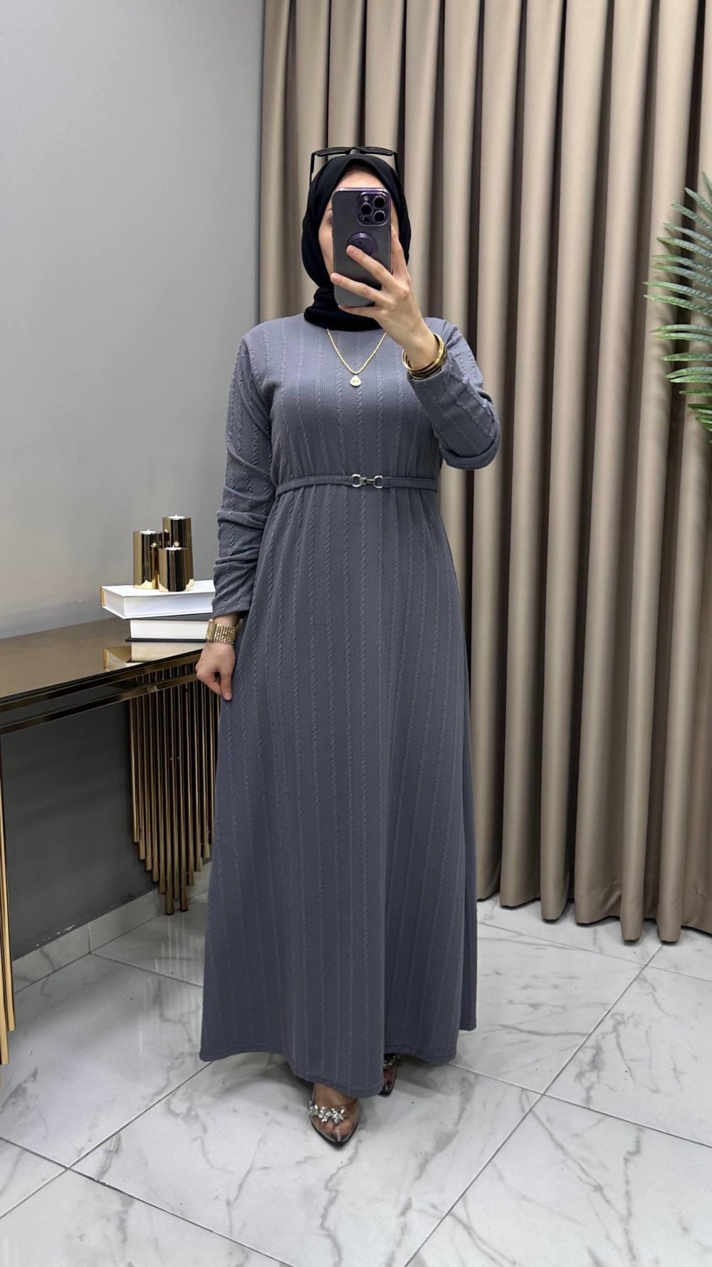 Hüda Elbise Gri