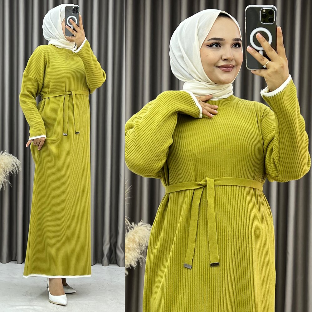 Hünkar Triko Elbise Yağ yeşili