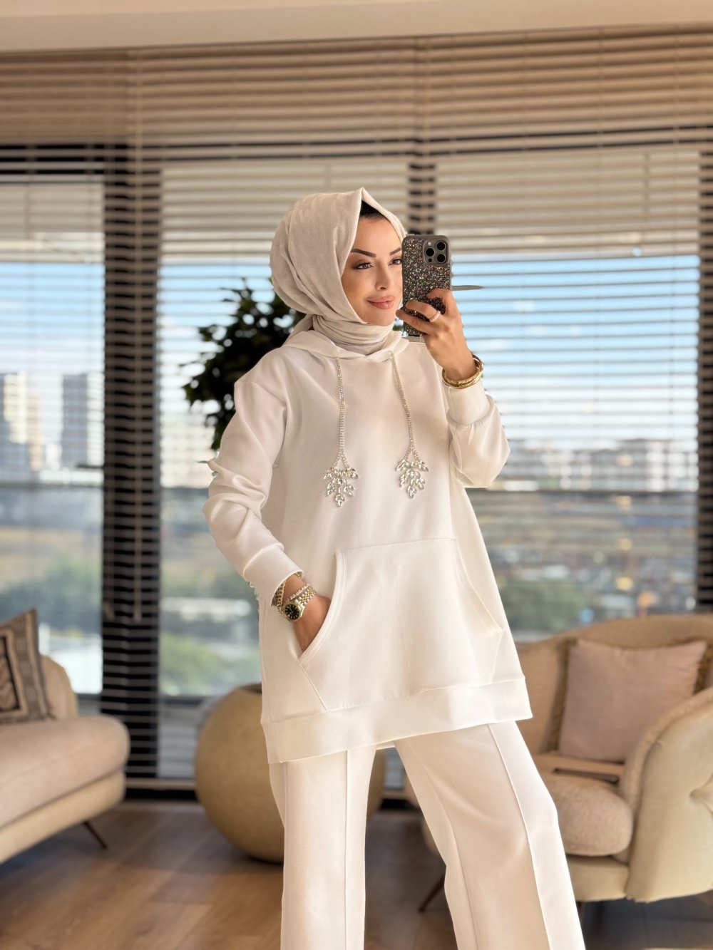HWN9020 Maraya Kanguru Cepli Sweat Ekru