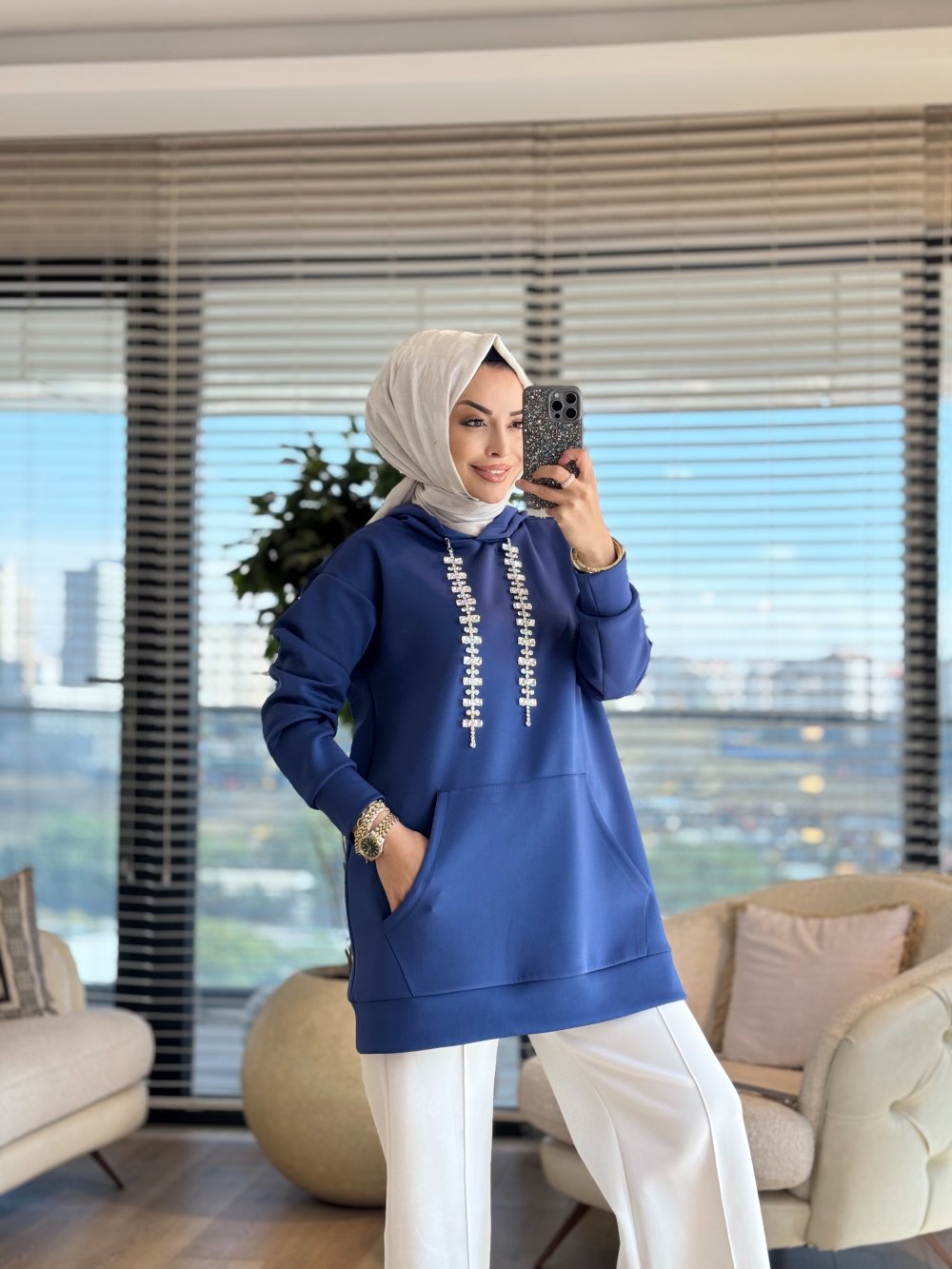 HWN9021 Parla Kanguru Cepli Sweat İndigo