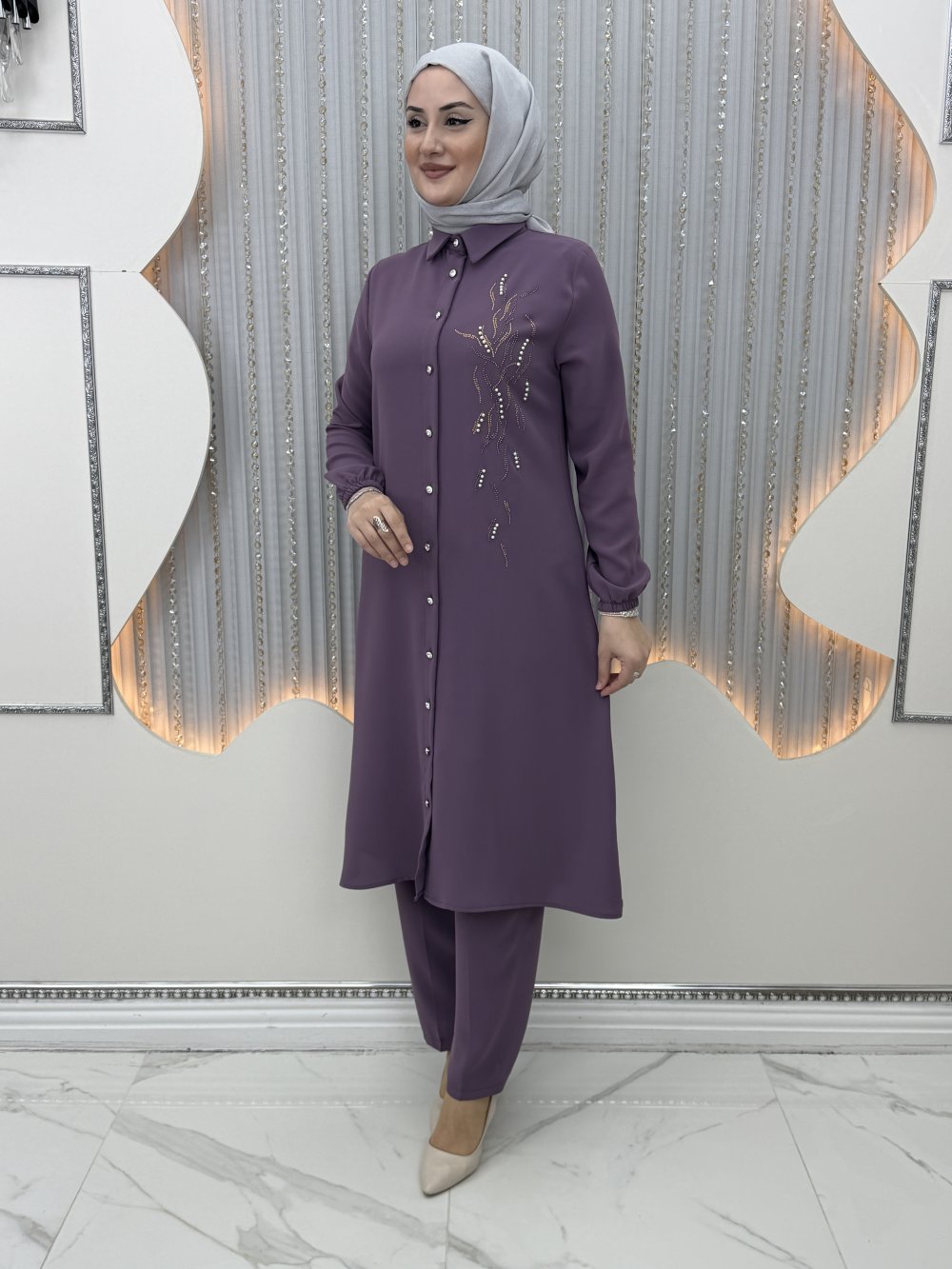 İkra Pantolonlu Takım Mor