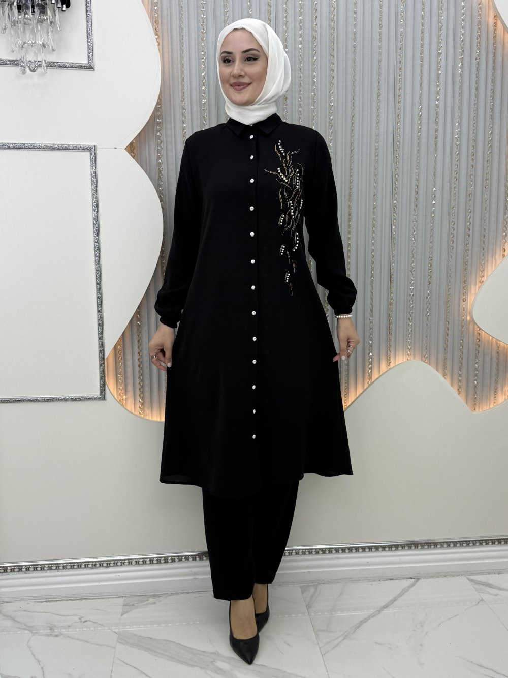Ön yanı taş inci detaylı