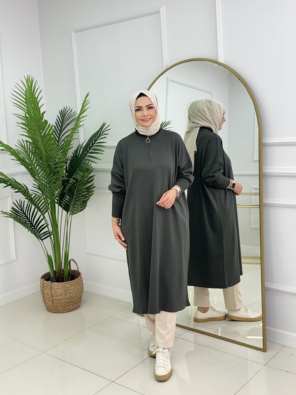 Basıc  merserize tunik; nefes alan dokusu ve rahat kalıbıyla her kombine uyum sağlar.