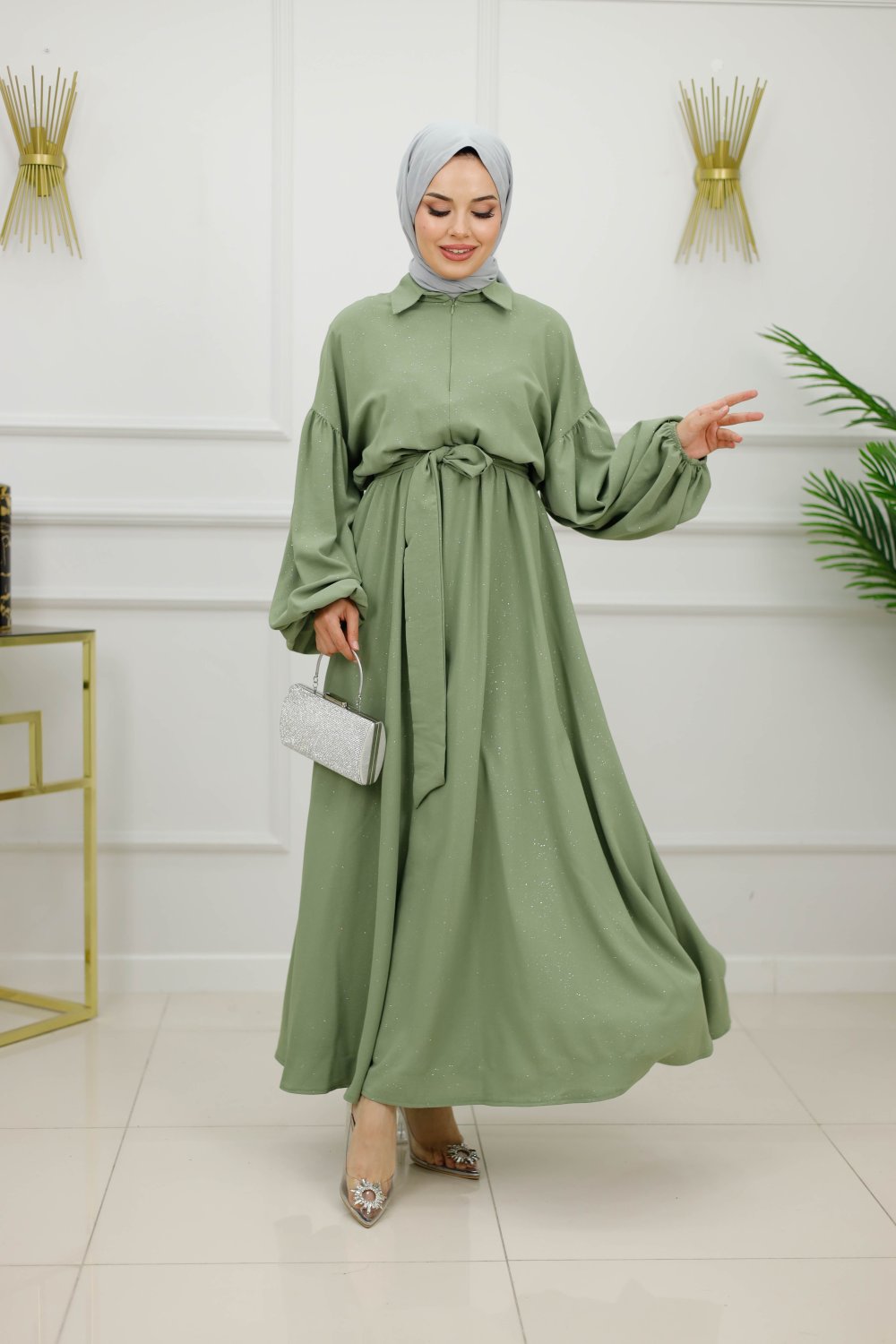 IŞILTI ELBİSE-HAKİ