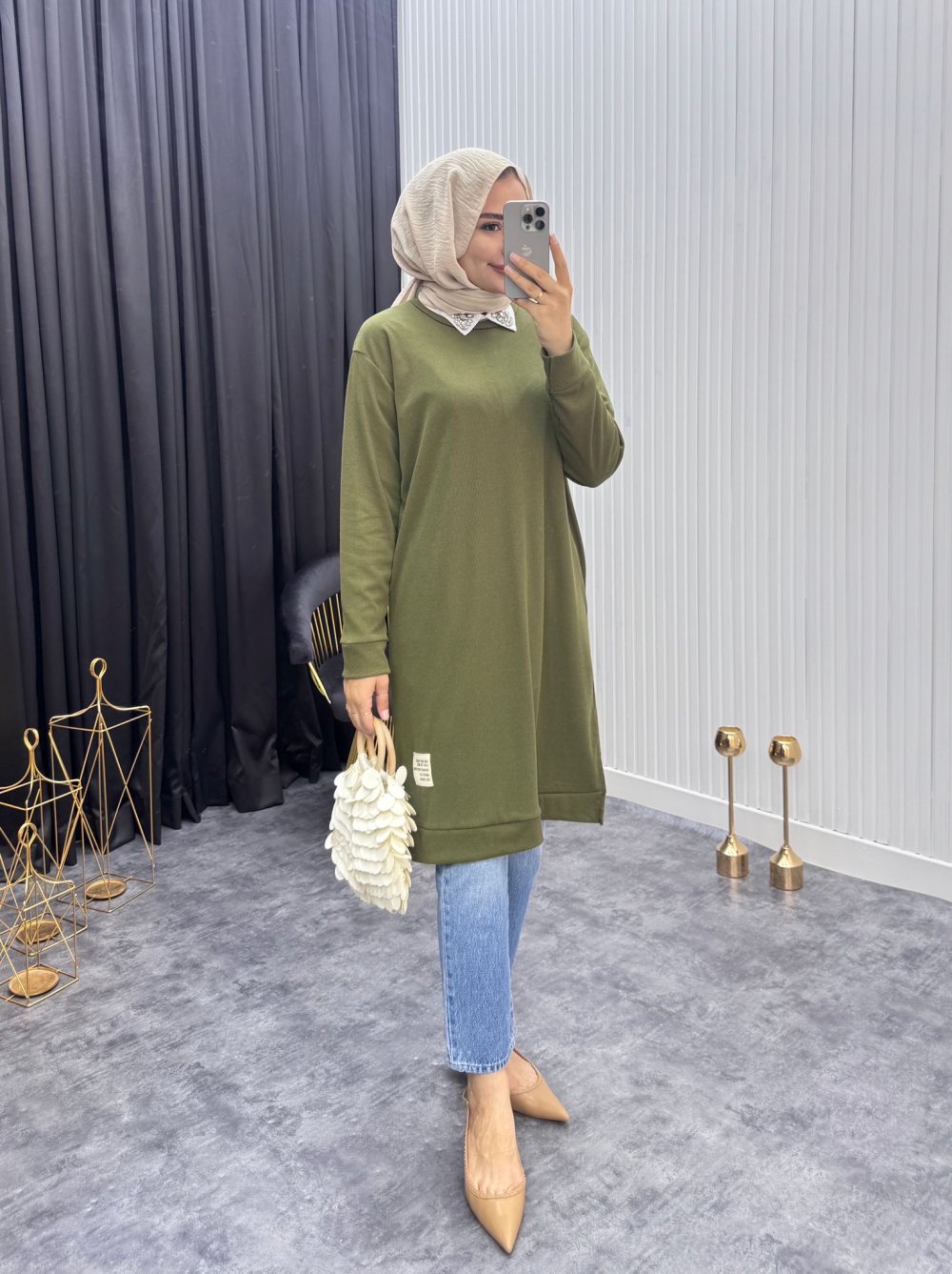 Önden arma detaylı yandan mini yırtmaç detaylı bisiklet yaka sweat