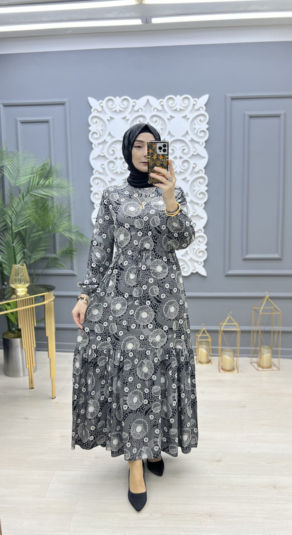 Kamelya Elbise Siyah Beyaz