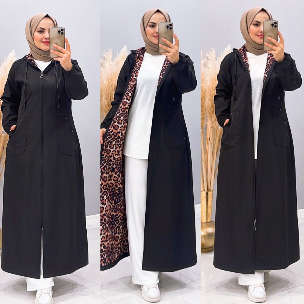 Leoparlı Mevsimlik KapbrKUMAŞ :Bondik Su geçirmez yağmurluk kumaşbrBEDEN :388042444648brÜRÜNnbsp;KODU :nbsp;2099