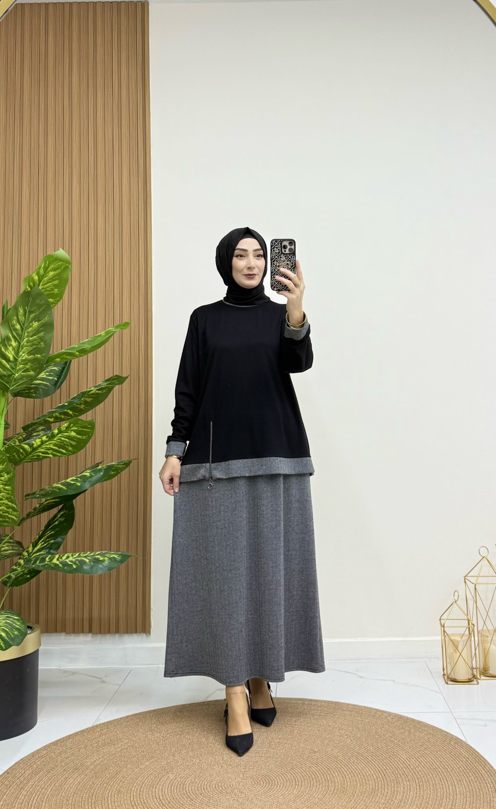 KARMİN ETEKLİ TAKIM Siyah