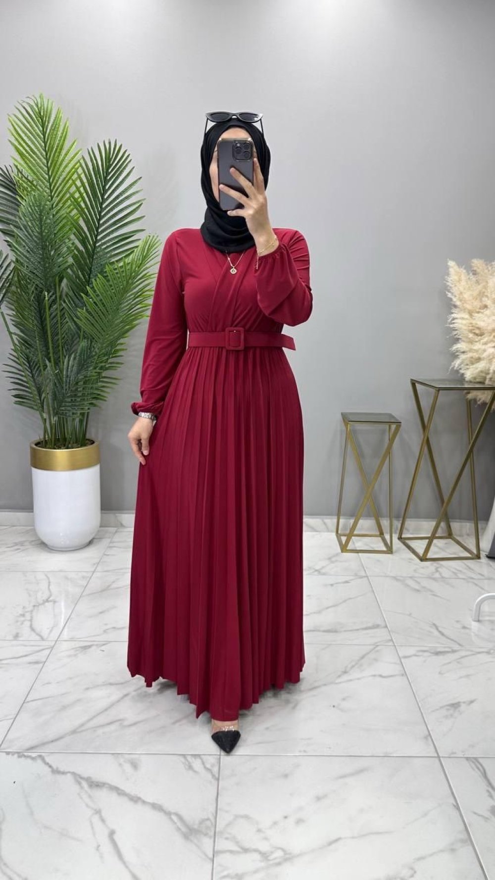 Kemerli Elbise Bordo