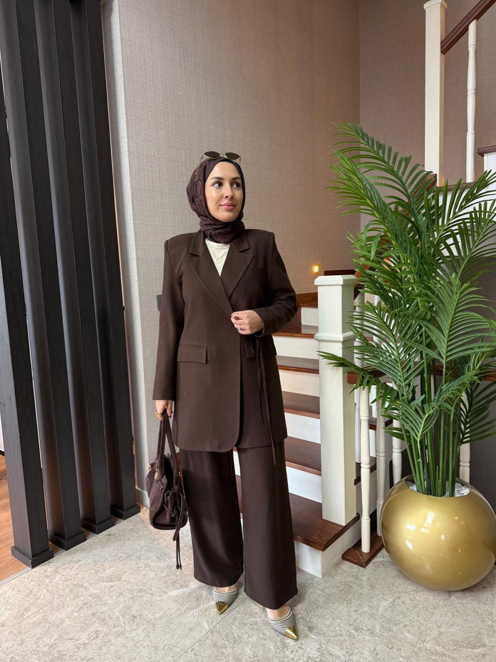 Kruvaze Ceket Takım Kahverengi