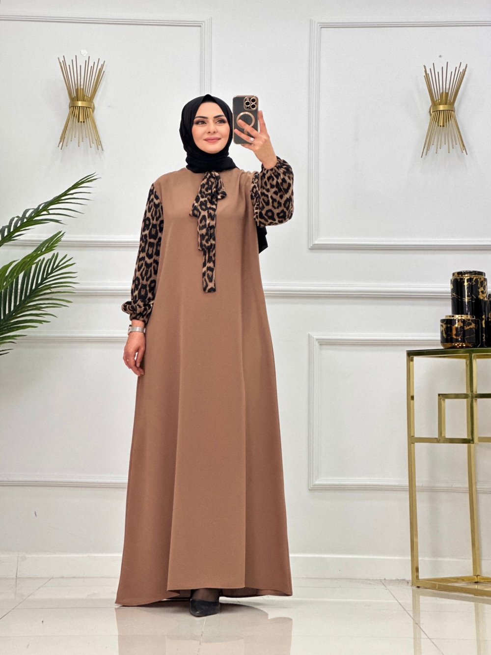 Krep kumaş kollar leopar şifon (iç göstermez)