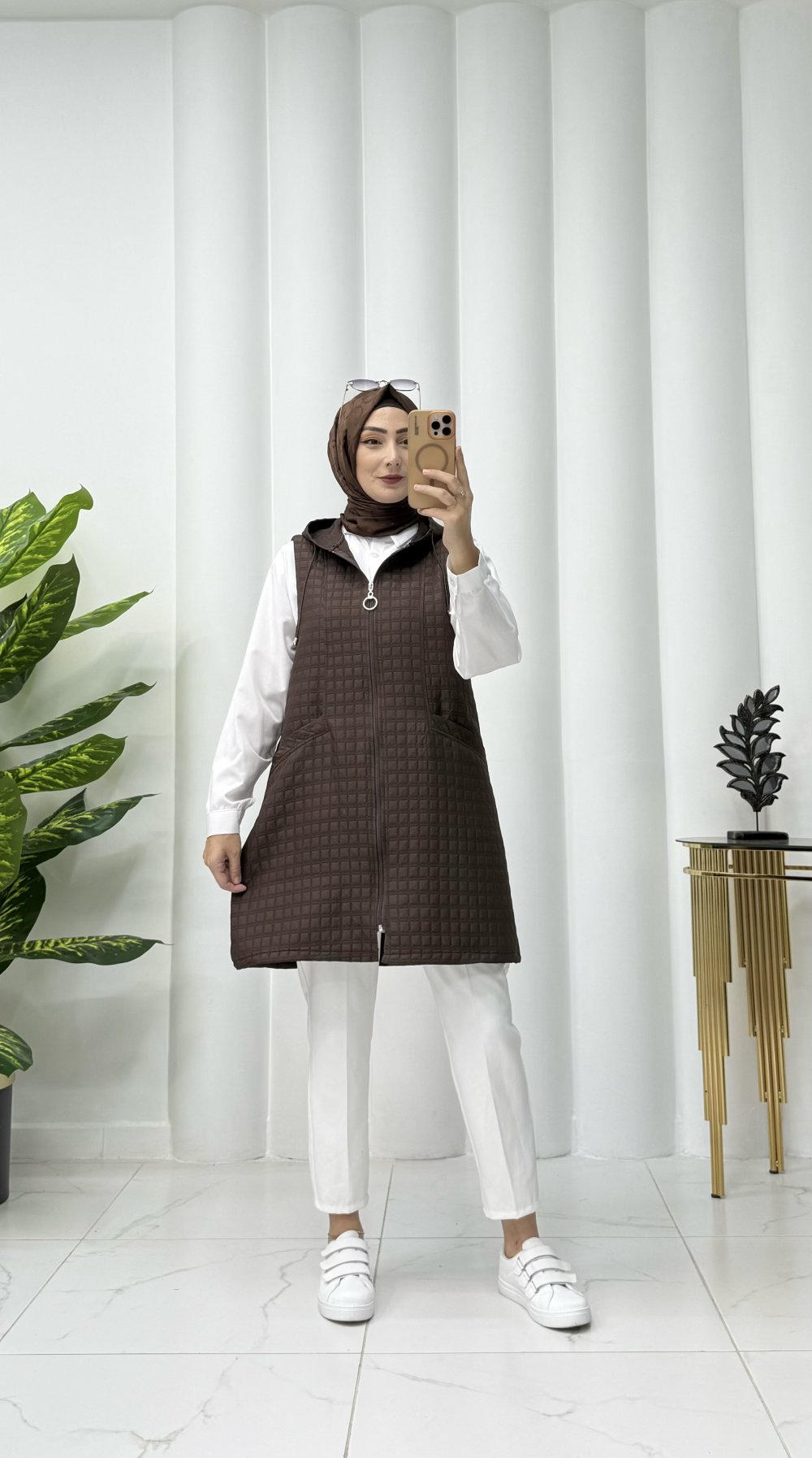 Lizya kapitone yelek Acı Kahve