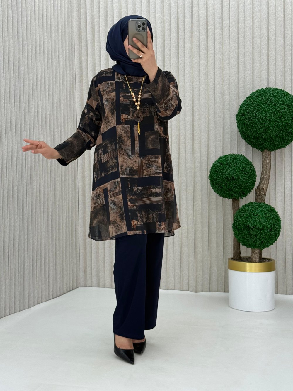Tunik dijital baskılı şifon içi sandy kumaş