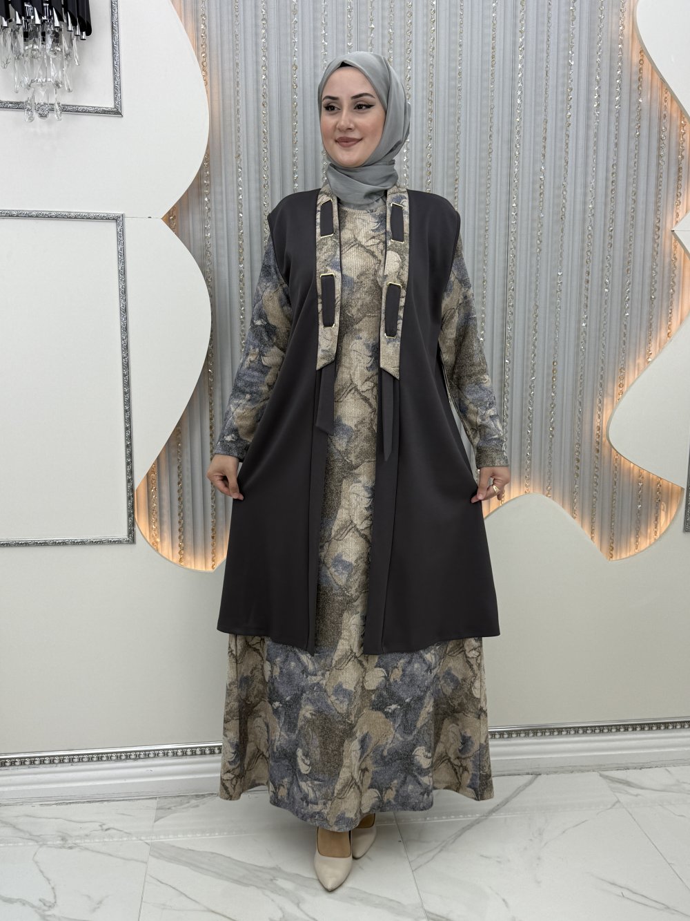 Mehra Elbiseli Hırka Gri
