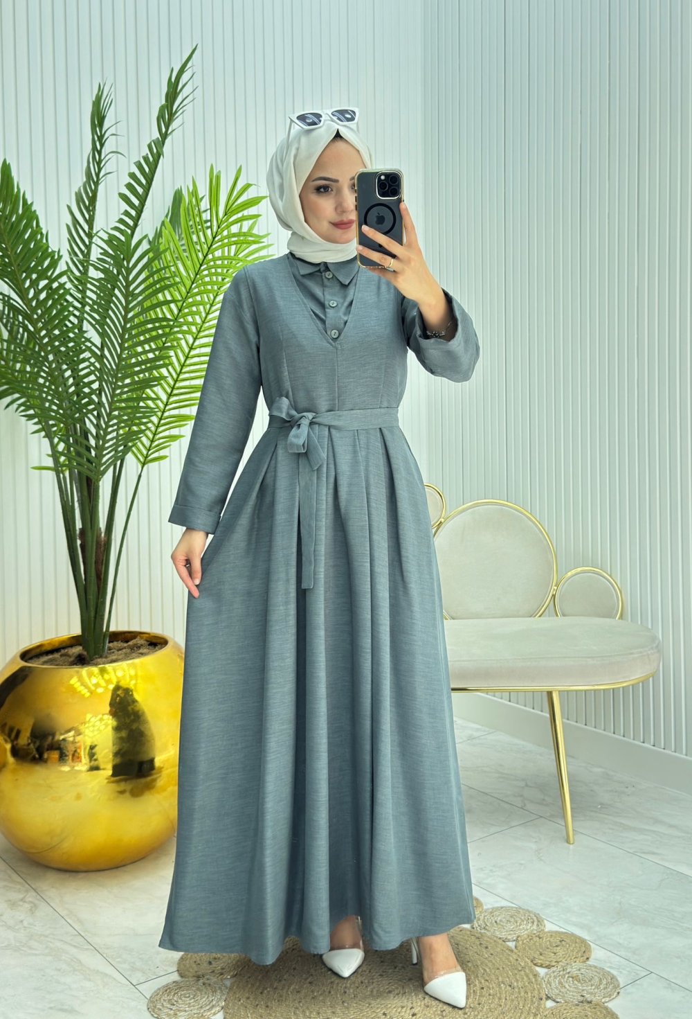 gömlek jile kemer olmak üzere 3 parçadan oluşmaktadır