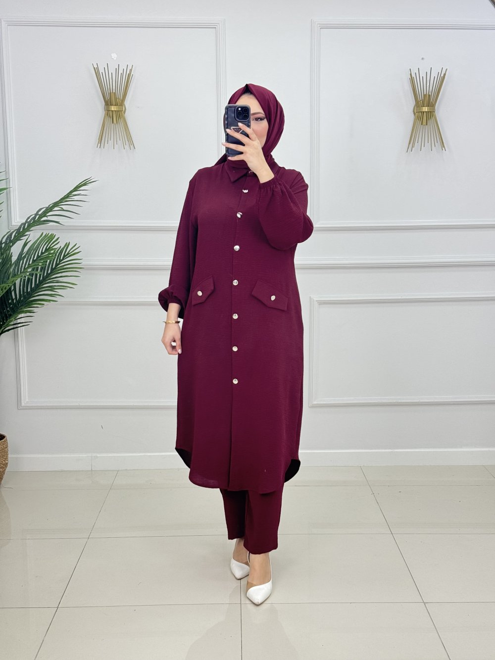 MELİKE DÜĞMELİ TAKIM-BORDO