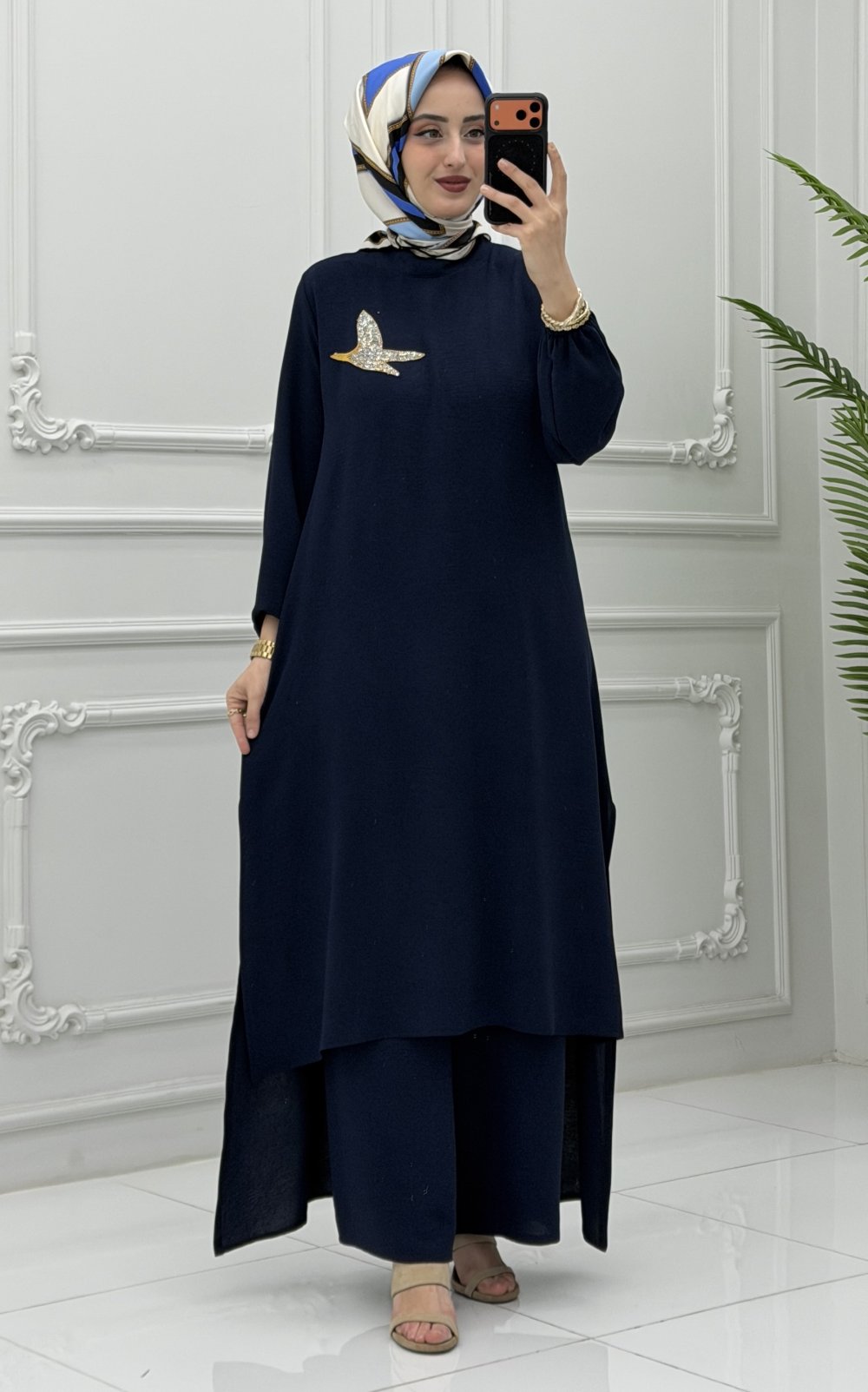 Rahatlık ve şıklığı bir araya getiren Melina Takım, sade ama zarif duruşuyla günlük kombinlerinizi güçlendiriyor. Yumuşak kumaşı ve esnek yapısı sayesinde gün boyu konfor sunarken, modern kesimiyle stil sahibi bir görünüm yaratır.