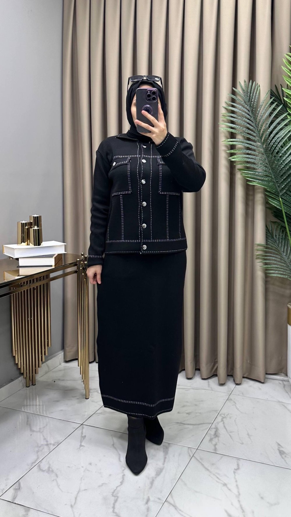 Melis Triko Etekli Takım Siyah