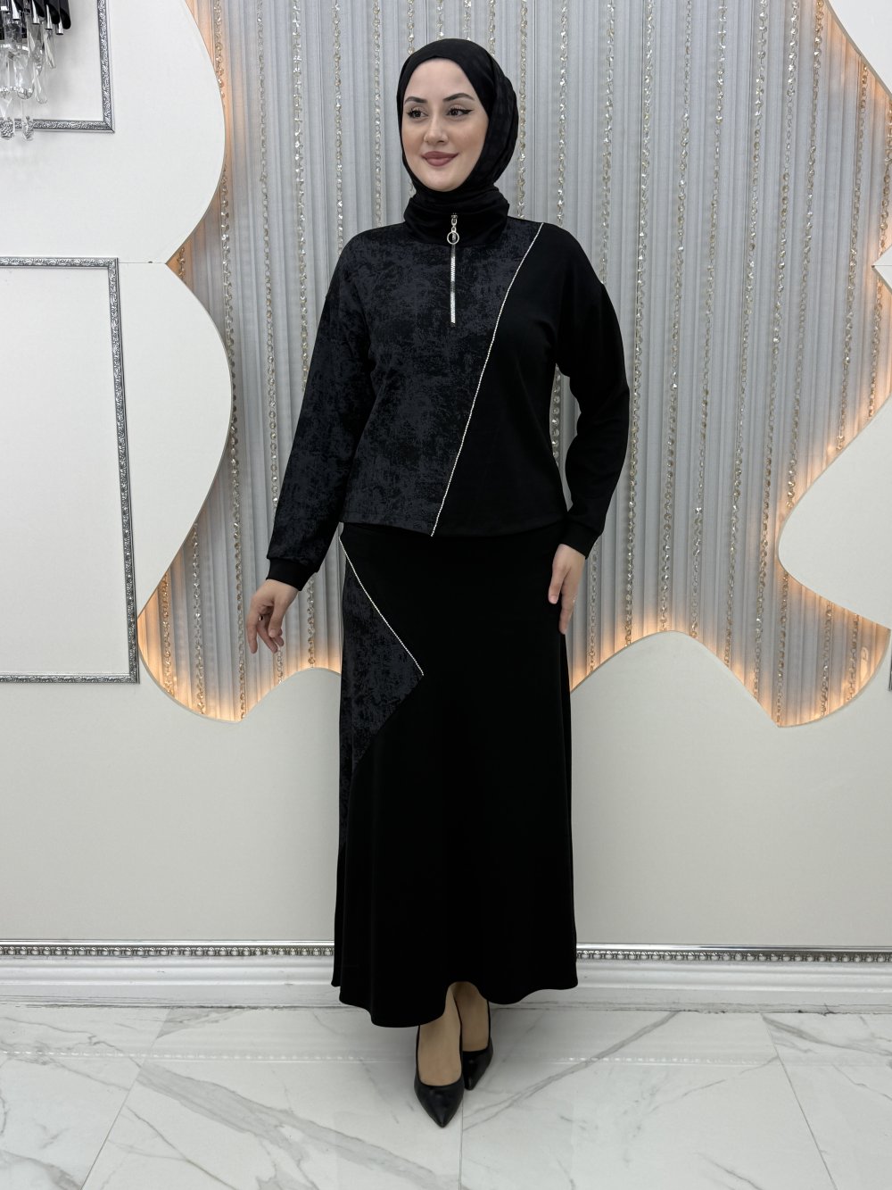 Melodi Etekli Takım Siyah