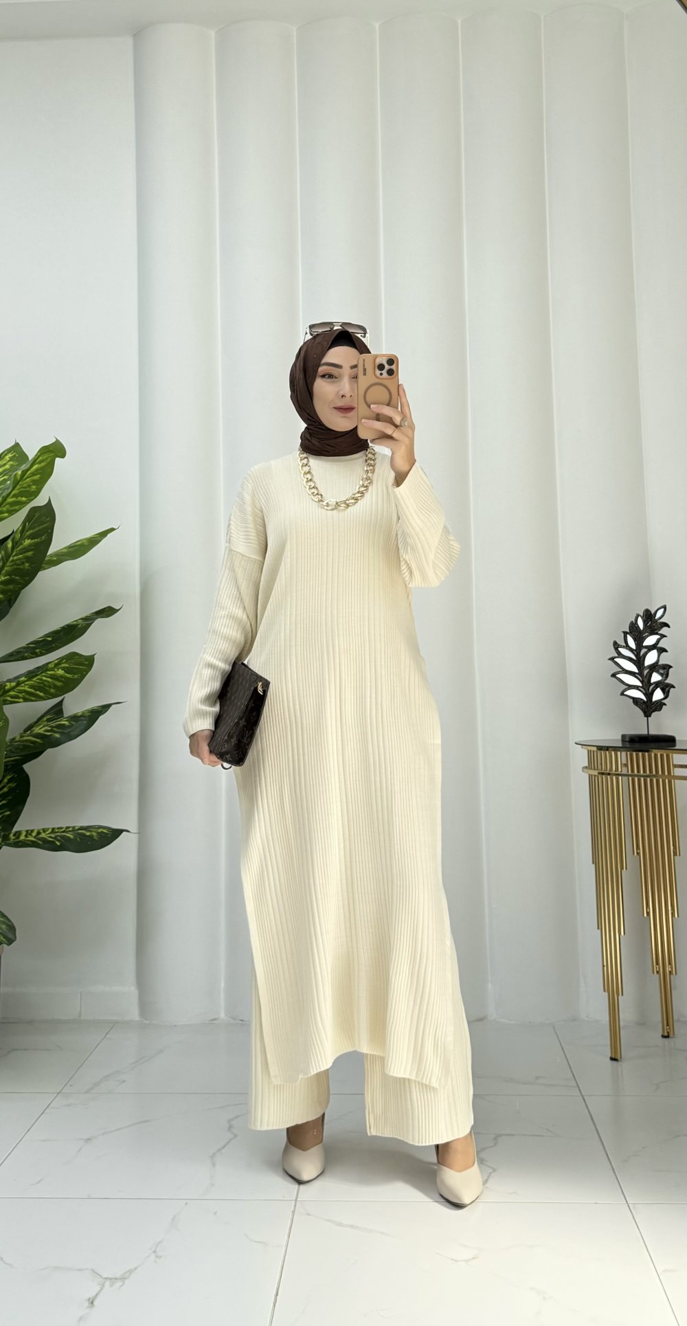 Mercan triko takım Krem
