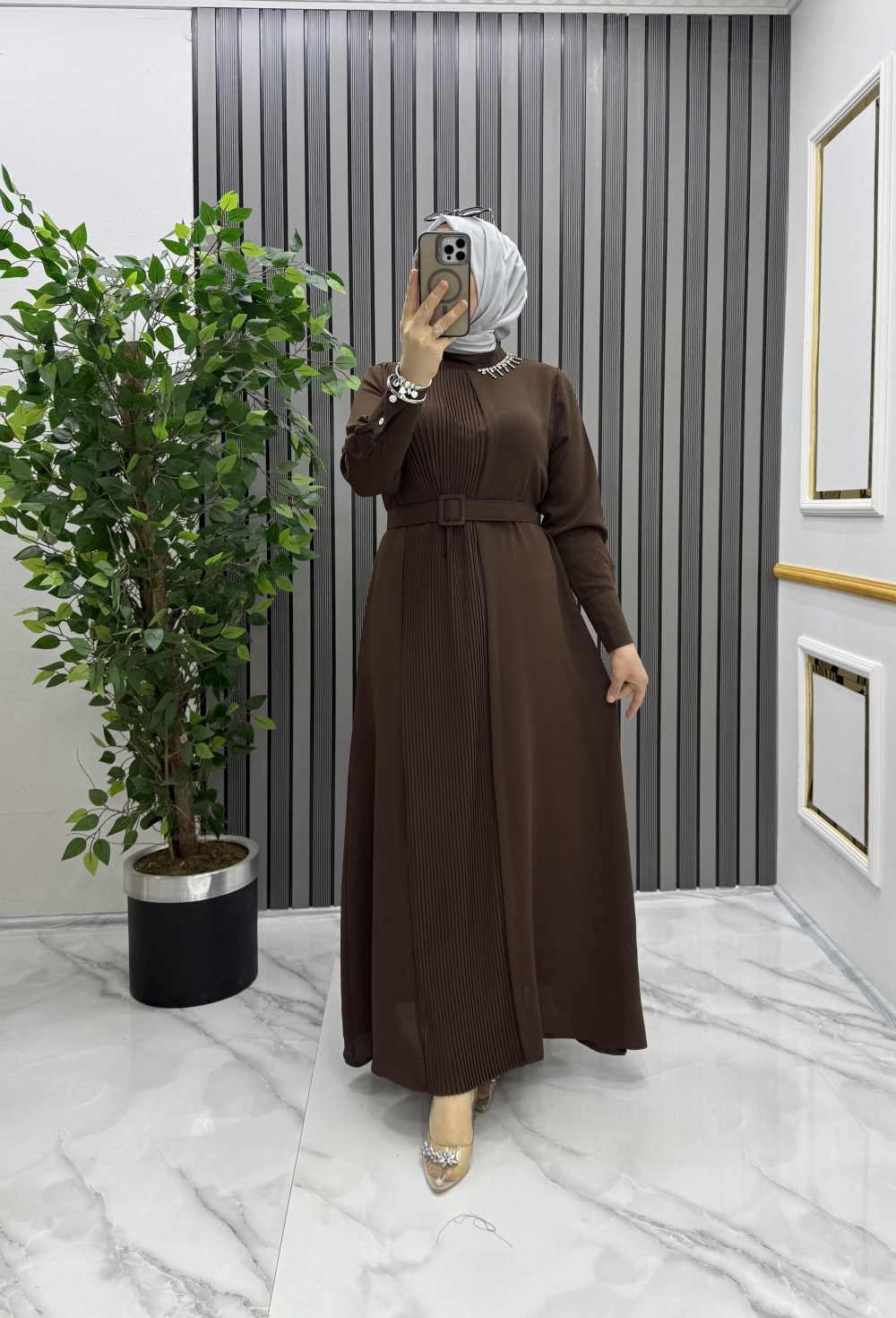 Mısra elbise Kahverengi