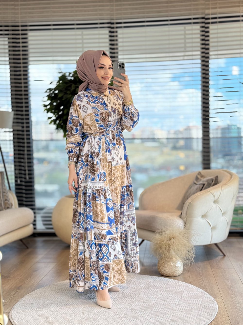 MRW1299 Flower Elbise Mavi
