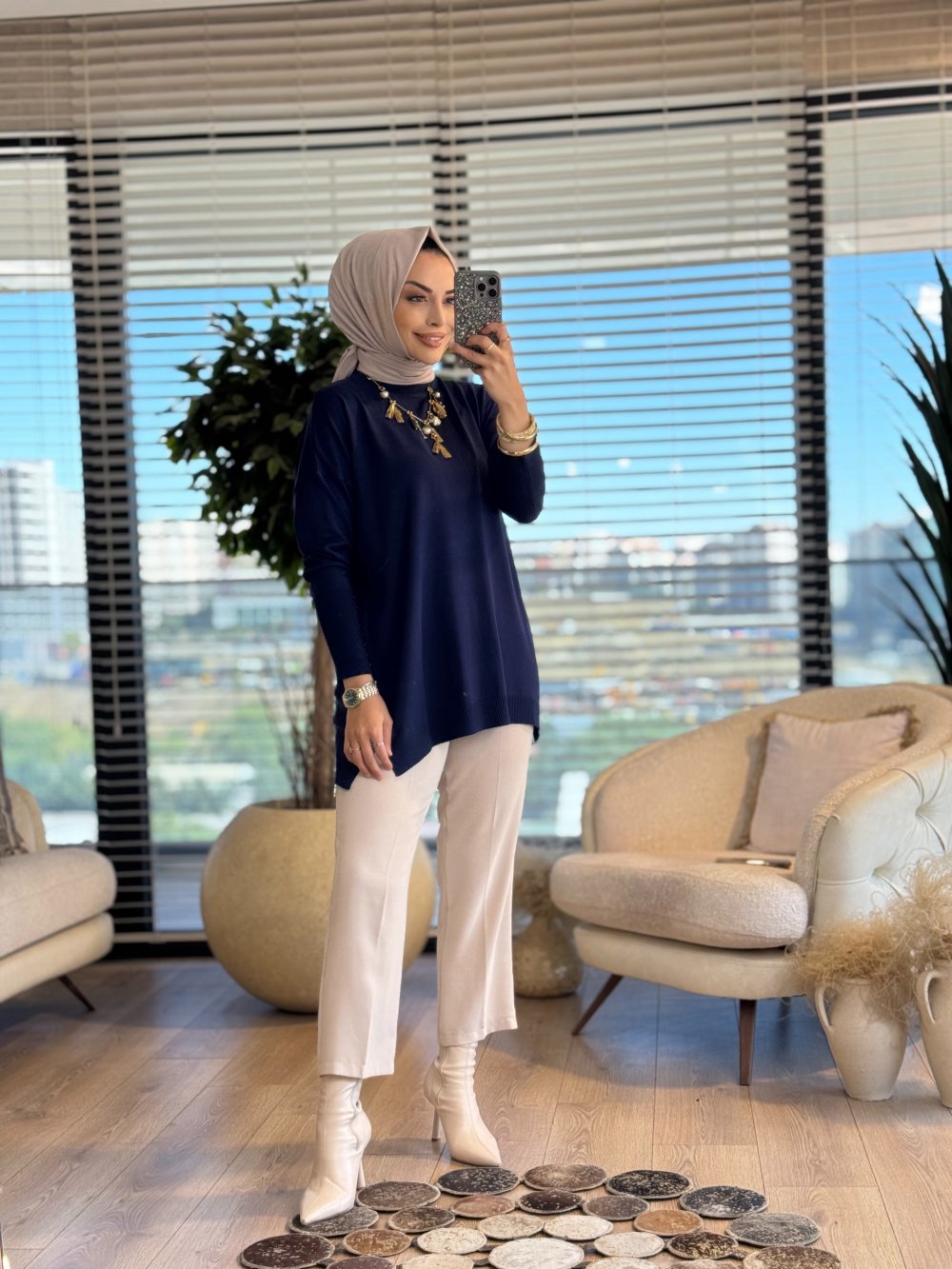 MRW1503 Basic Düğme Triko Tunik Lacivert