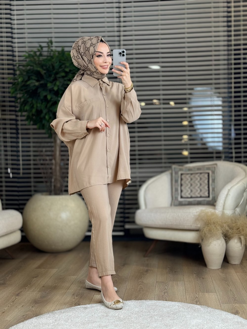 MY-2048 Tek Cepli Düğmeli Takım Vizon