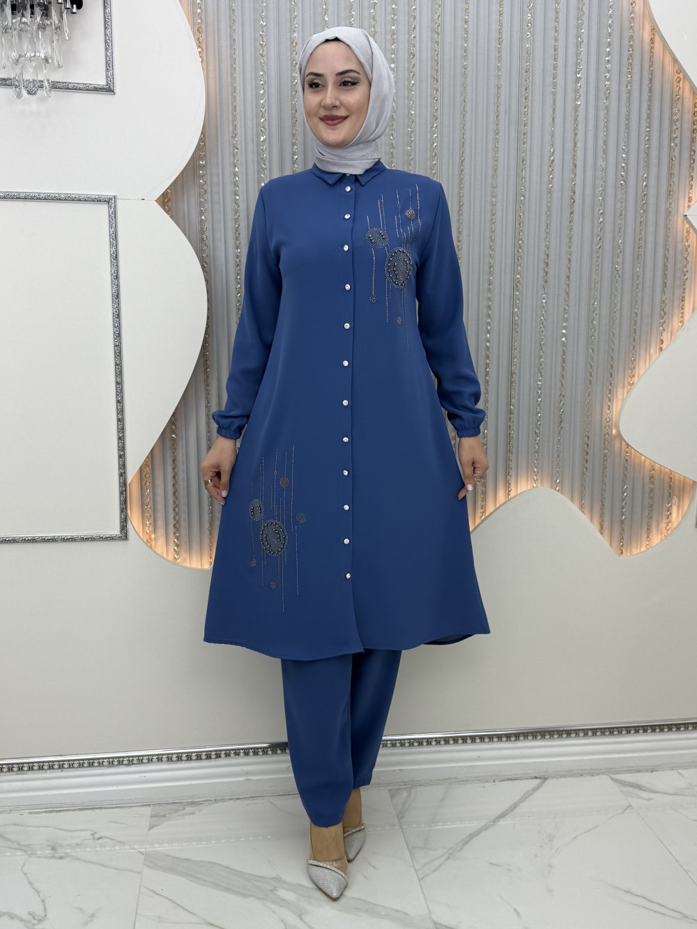 Tunik önden taş düğme detaylı