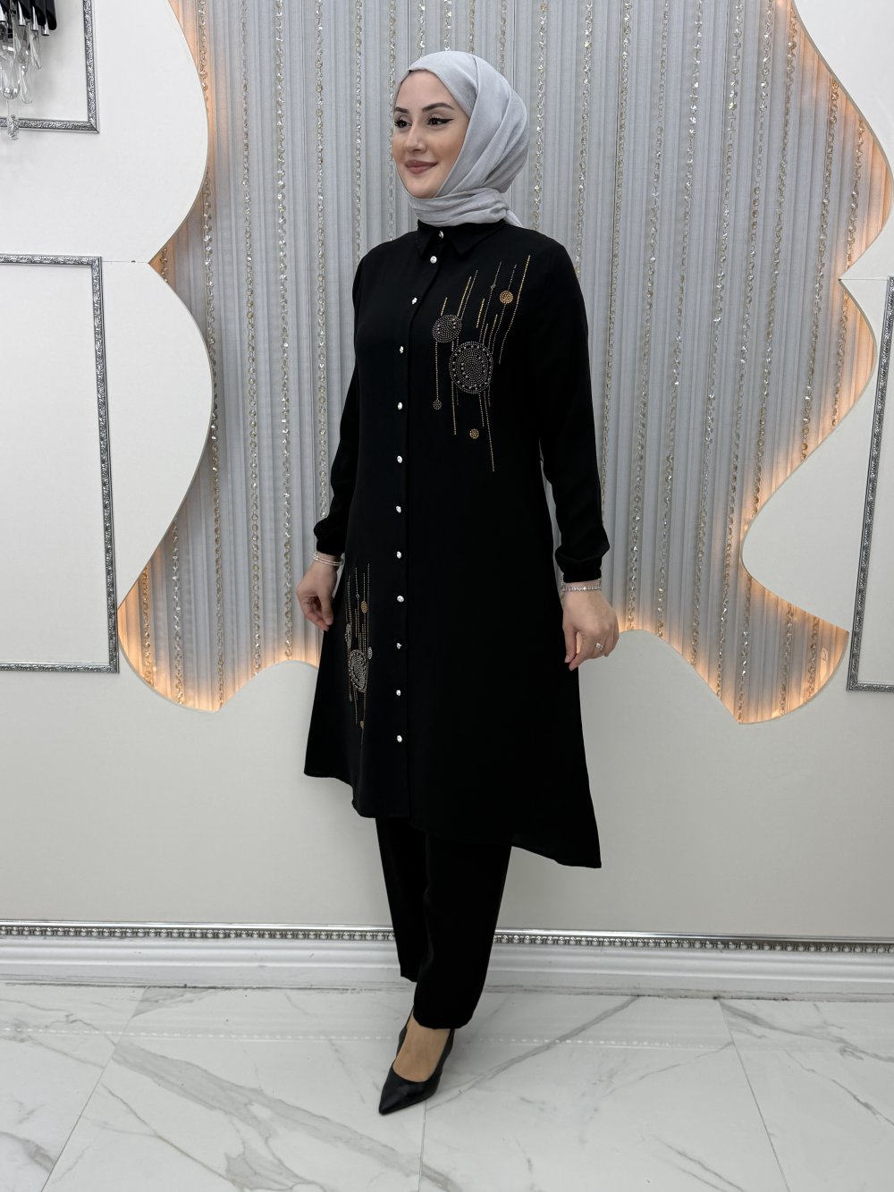 Tunik önden taş düğmelidir