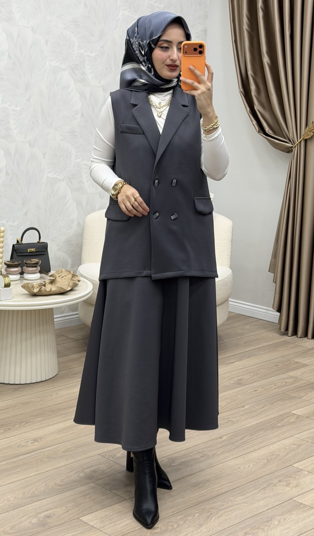 Nare Etek Takım,hem iş hem de günlük hayatınızda rahatlıkla tercih edebileceğiniz çok yönlü bir parçadır. Şıklığı konforla buluşturan bu tasarım, sezonun en gözde modellerinden biri olacak