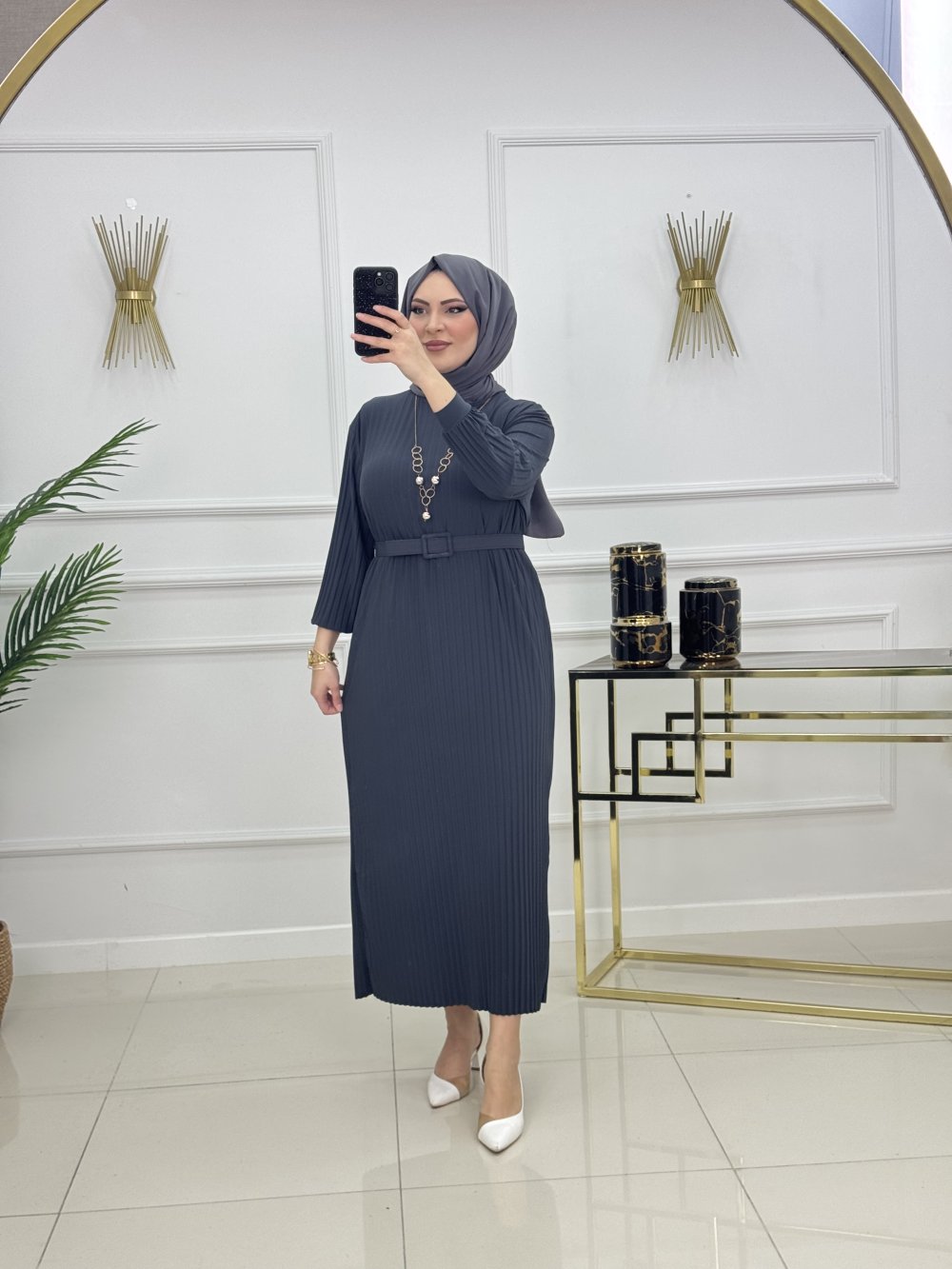 NAZLI PİLİSELİ ELBİSE-DUMAN
