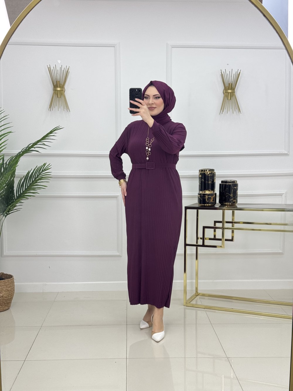 NAZLI PİLİSELİ ELBİSE-MÜRDÜM