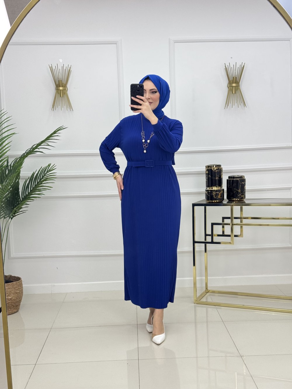 NAZLI PİLİSELİ ELBİSE-SAKS MAVİSİ
