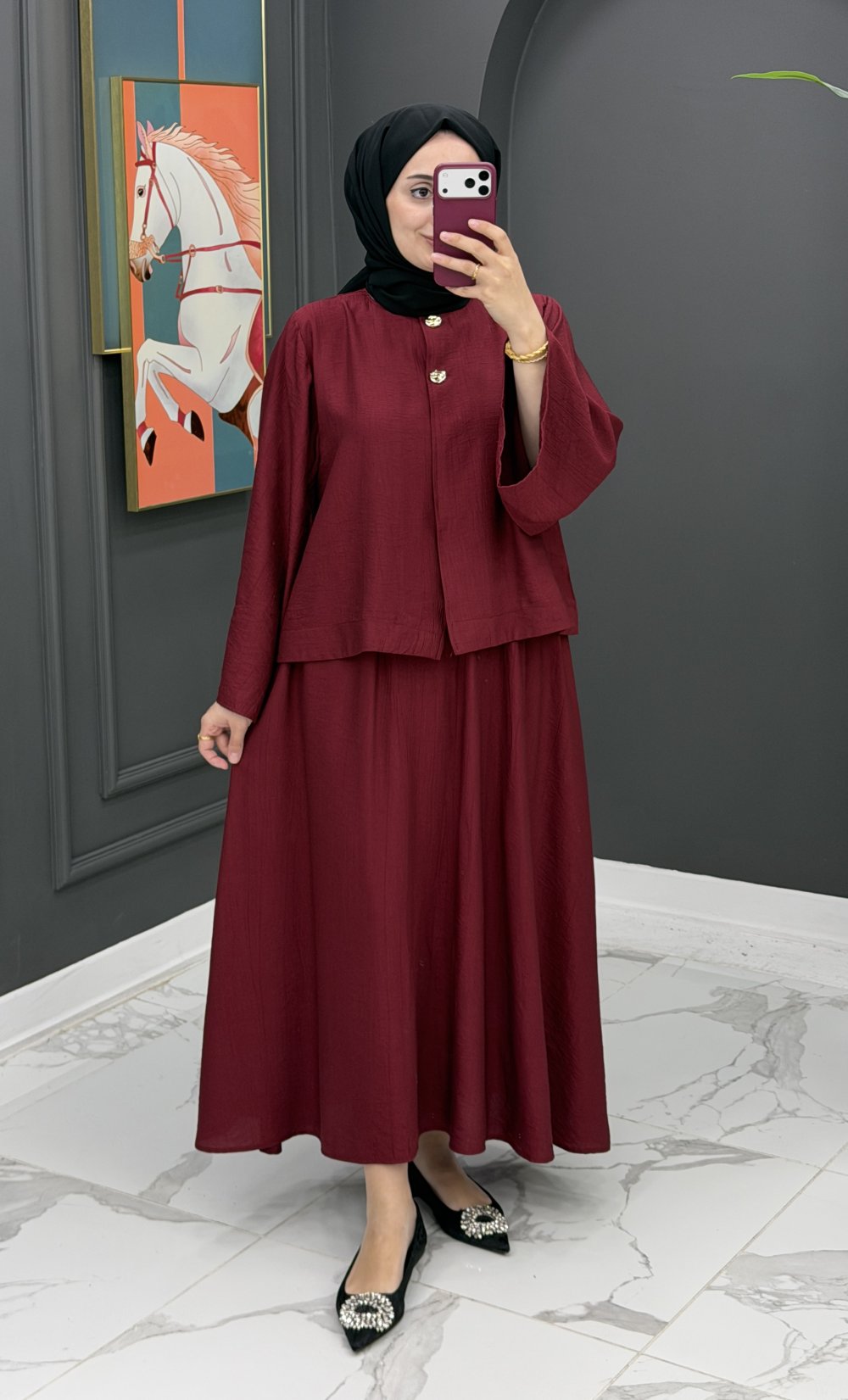 Neşe Etekli Takım - Bordo