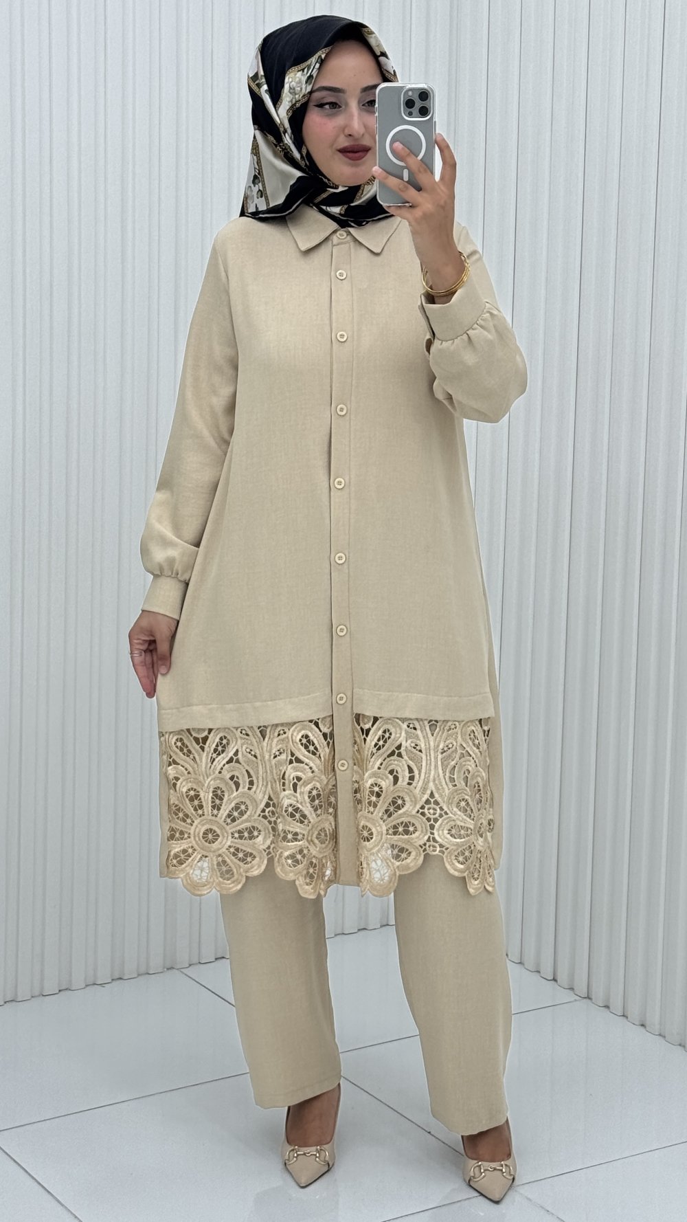 Nesrin Takım , hem iş hem de günlük hayatınızda rahatlıkla tercih edebileceğiniz çok yönlü bir parçadır. Şıklığı konforla buluşturan bu tasarım, sezonun en gözde modellerinden biri olacak