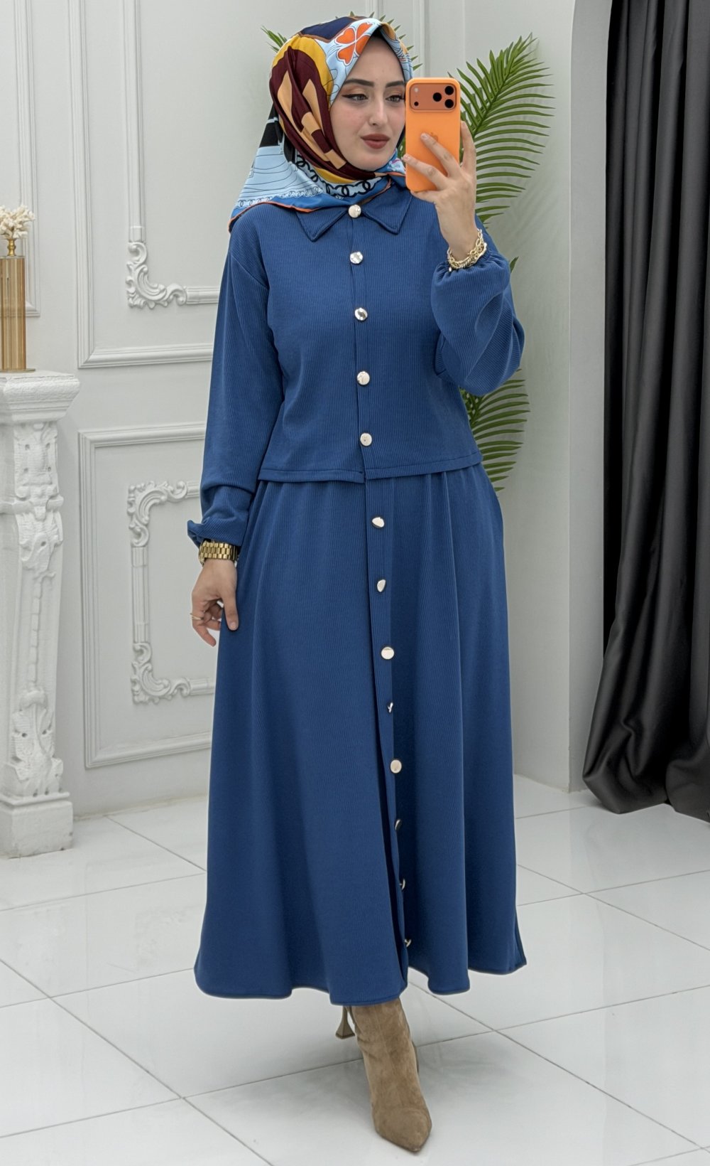 Rahatlık ve şıklığı bir araya getiren Neval  Etek Takım, sade ama zarif duruşuyla günlük kombinlerinizi güçlendiriyor. Yumuşak kumaşı ve esnek yapısı sayesinde gün boyu konfor sunarken, modern kesimiyle stil sahibi bir görünüm yaratır.