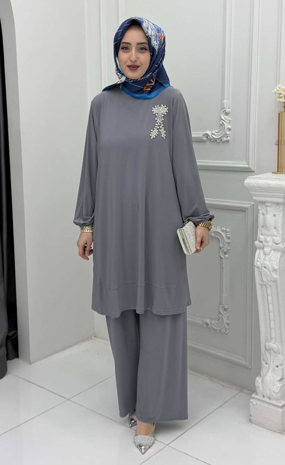 Nilda  Takım, hem iş hem de günlük hayatınızda rahatlıkla tercih edebileceğiniz çok yönlü bir parçadır. Şıklığı konforla buluşturan bu tasarım, sezonun en gözde modellerinden biri olacak!