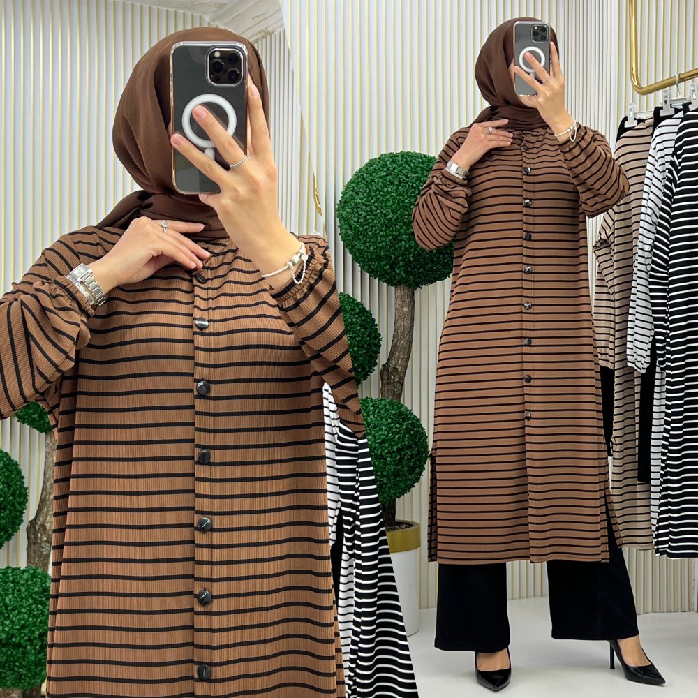 Örme kumaş boydan düğmeli kollar lastikli