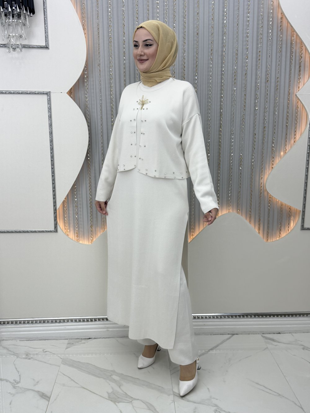 Omay 3’lü takım Krem