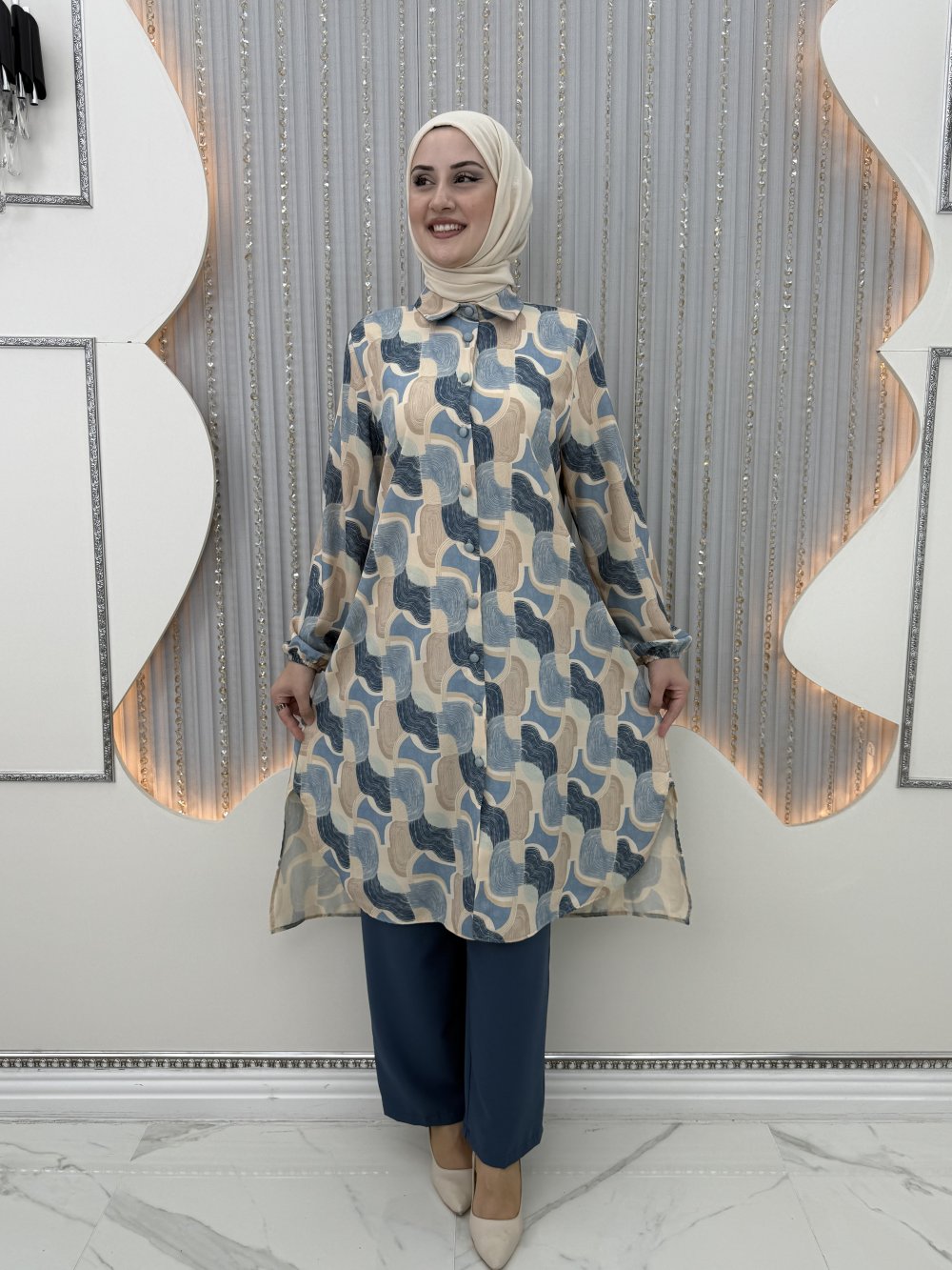 Oval pantolonlu takım Mavi