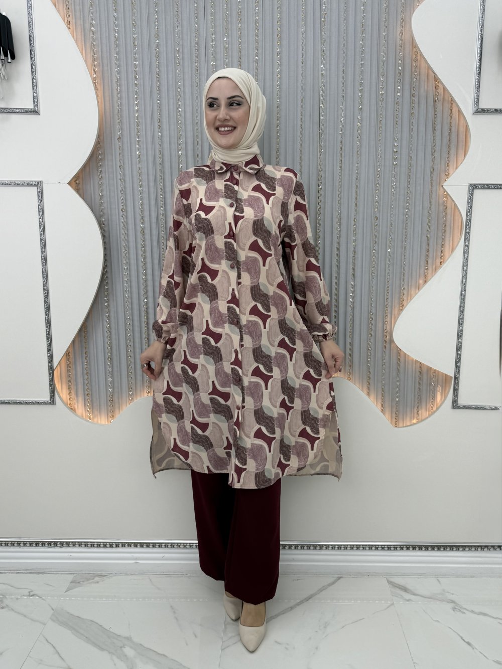 Oval pantolonlu takım Mürdüm
