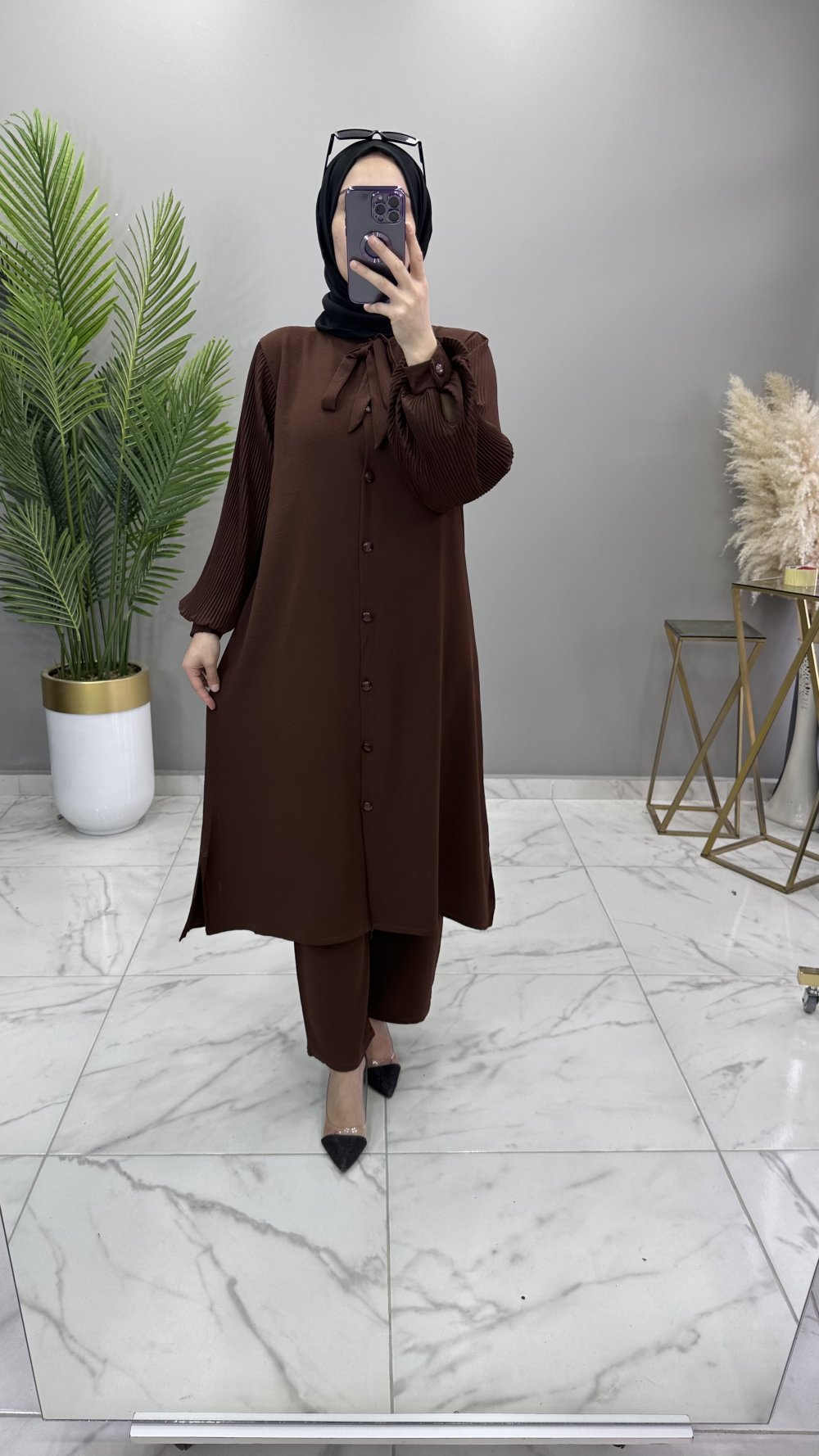 Ütü İstemez ithal Ayrobin Kumaş, kollar piliseli, fular deraylı