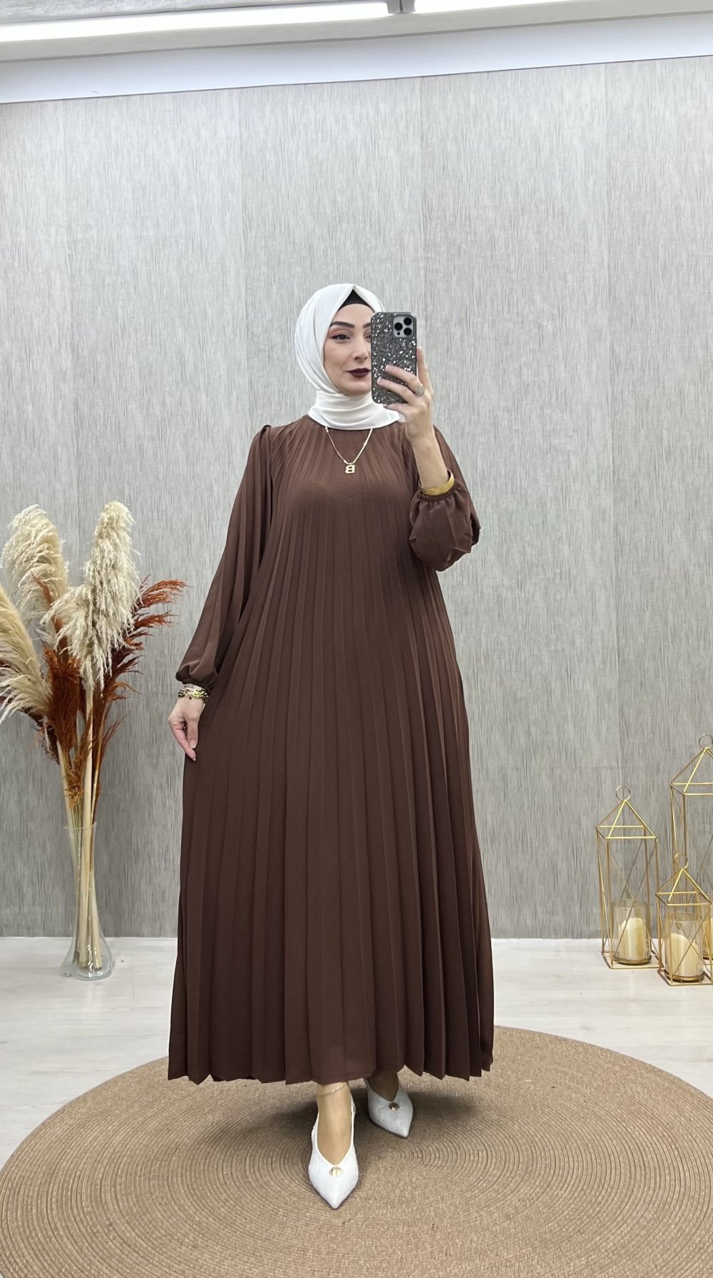 Petra pileli elbise Kahverengi