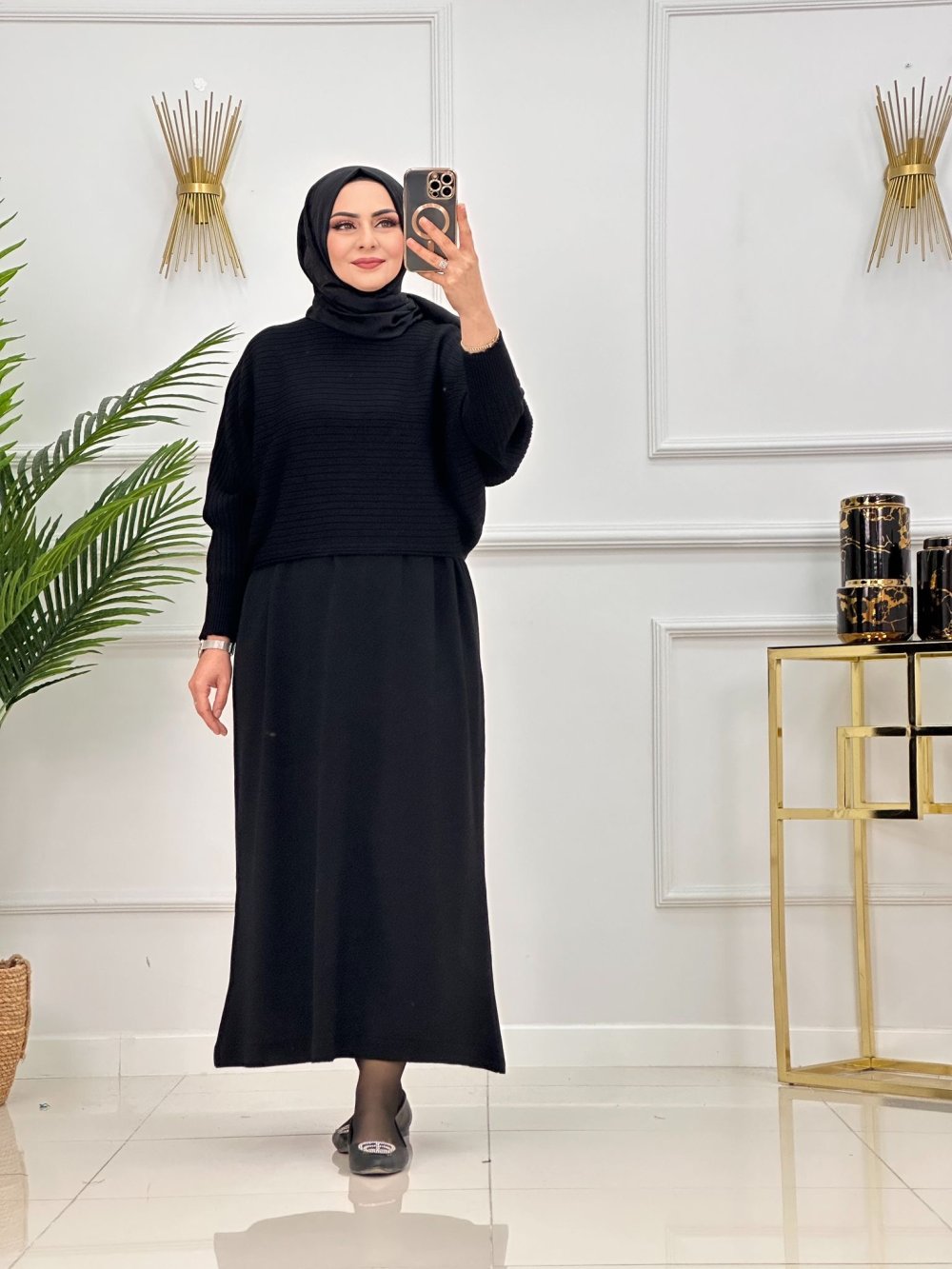 ?Ürün sıfır kollu elbise crop kazak olarak iki ayrı parçadan oluşmaktadır