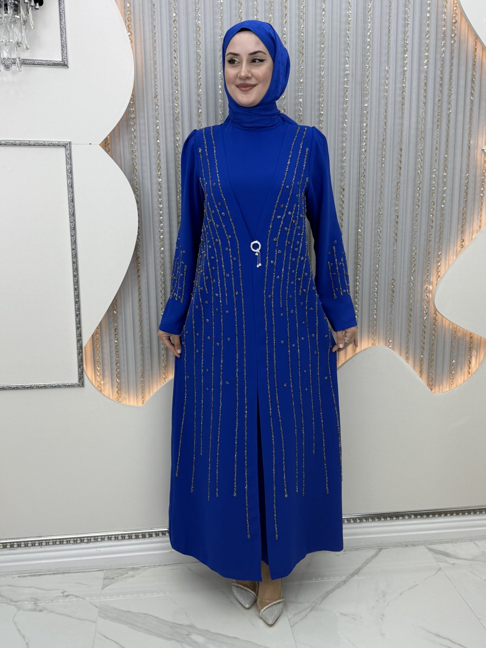 Pırlanta Abiye Saks Mavisi
