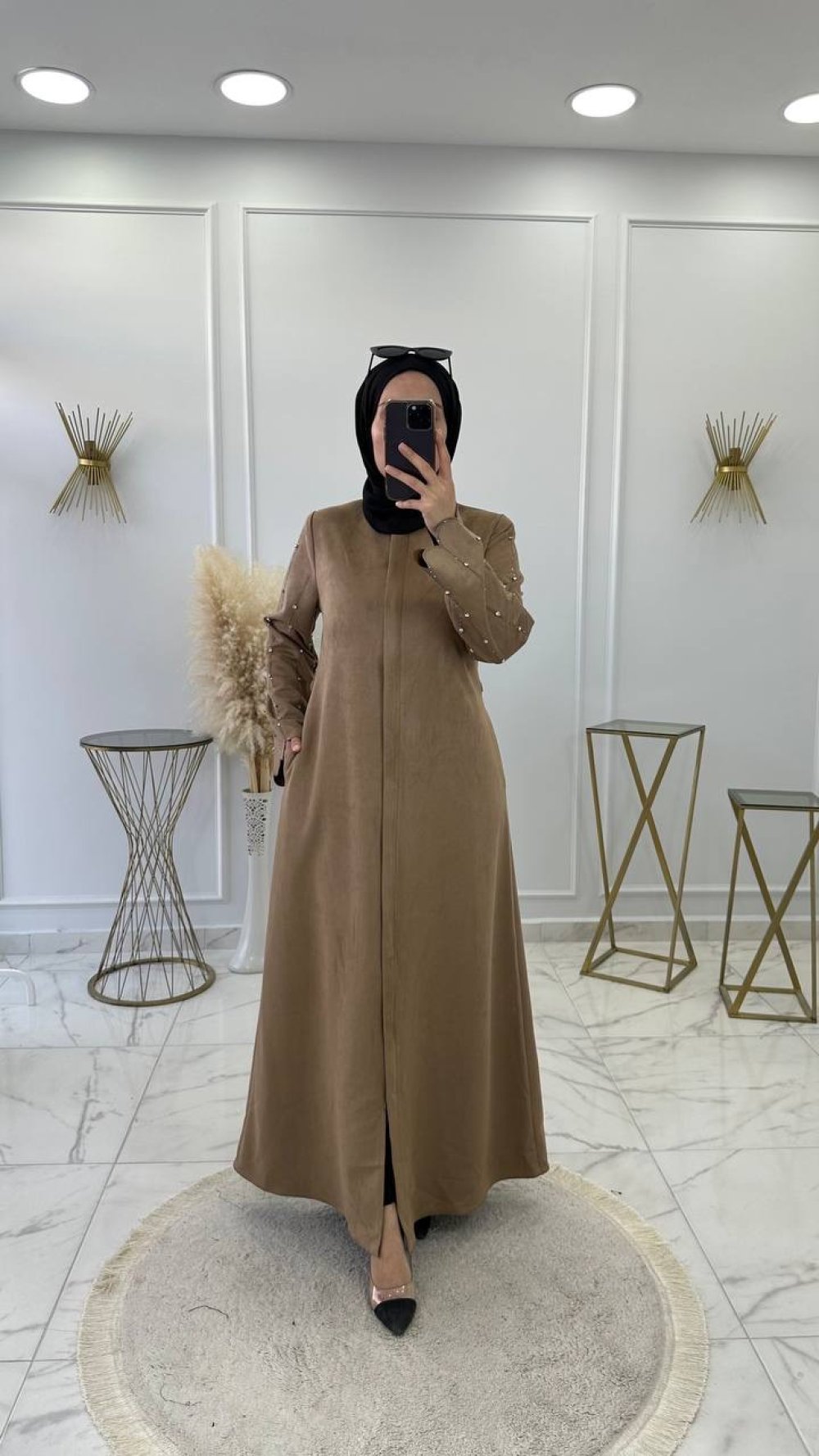 NUBUK KUMAŞ VE TAŞ DETAYLI SADE VE ŞIK FERACE MODELİMİZ