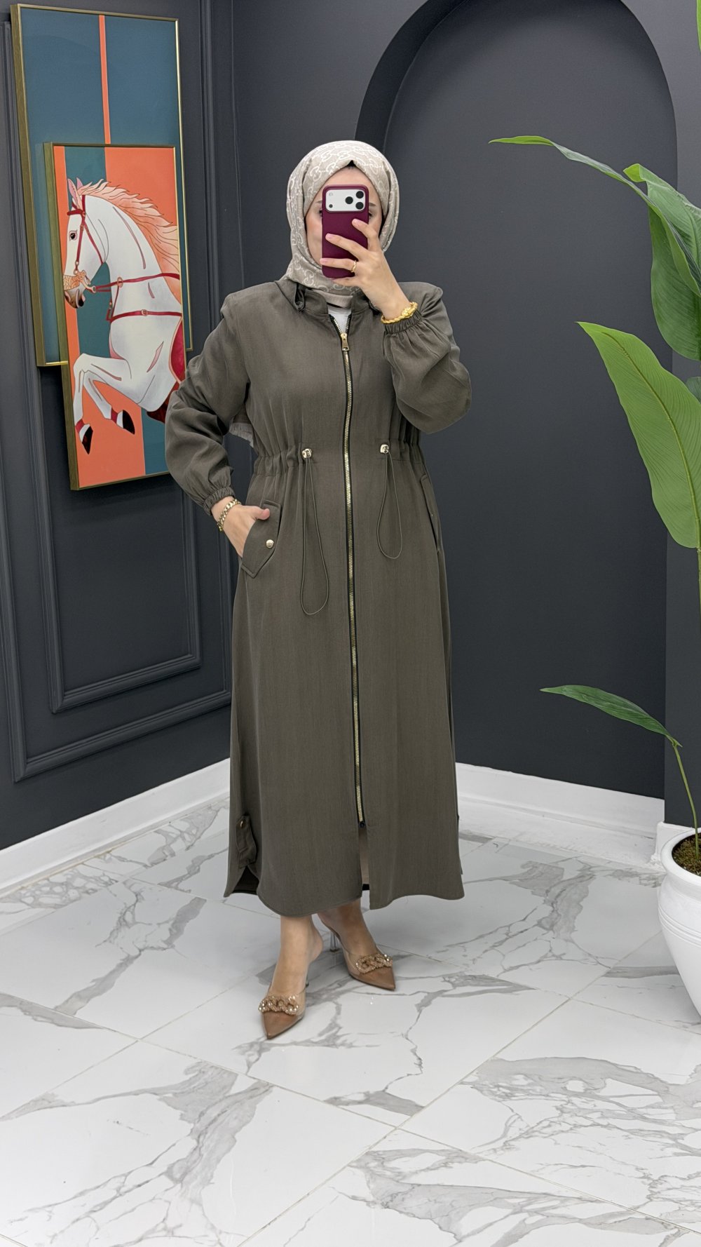 Qupra Kumaş Uzun Kap - Yeşil