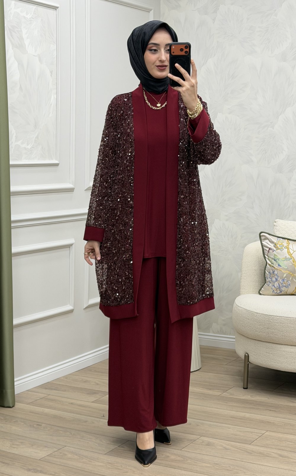 Safir 3 Lü Takım Bordo